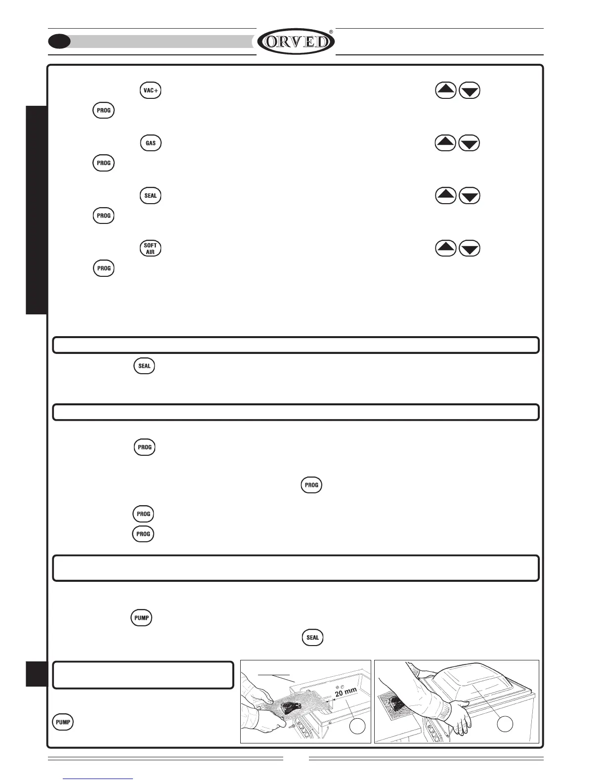 3)Lorsque le vide à l’intérieur du sachet est complet, appuyer sur la touche . L’appareil passera à la phase de soudure du sachet. Le cycle se
