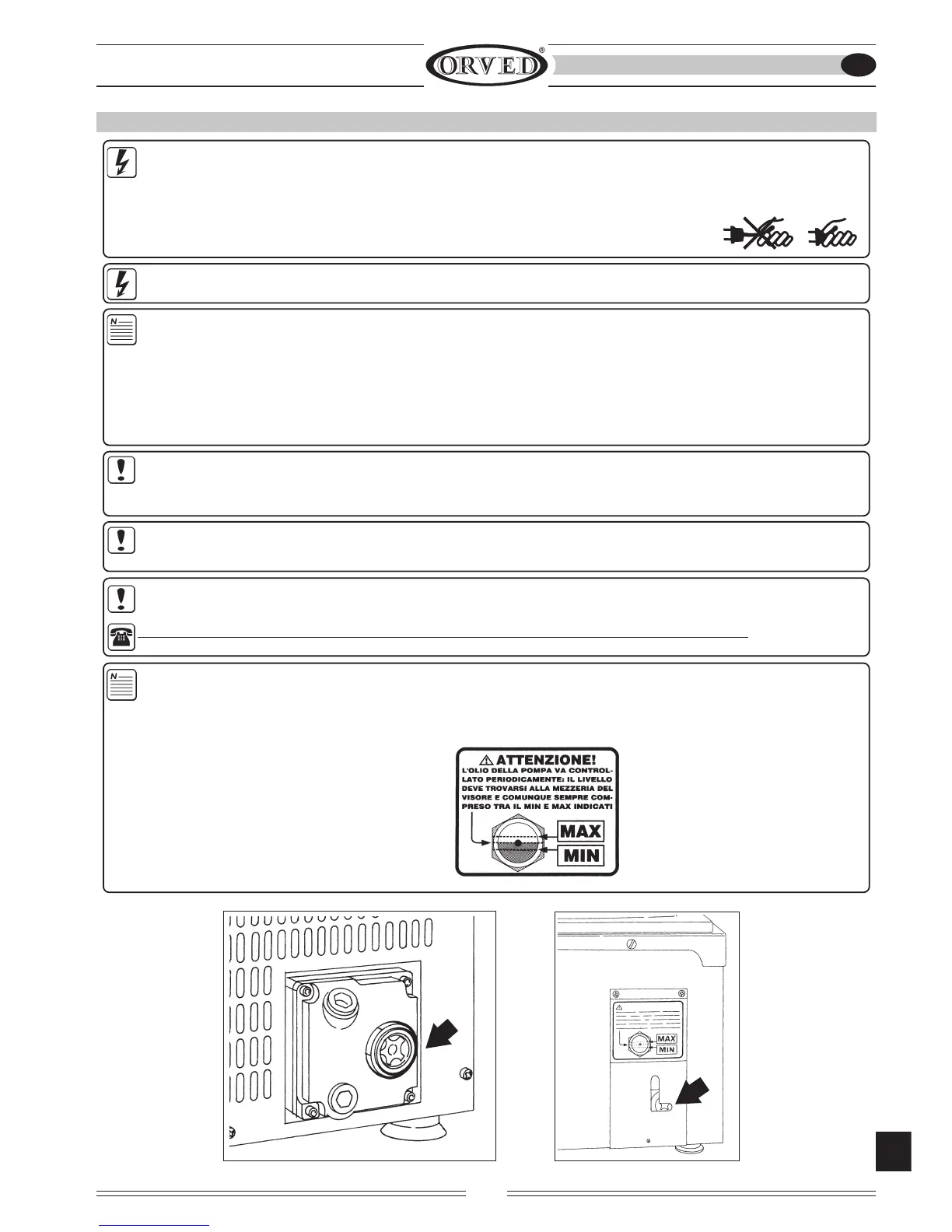 ¡ADVERTENCIA! Cada vez que se usa la máquina el aceite de la bomba debe ser controlado a través de la mirilla testigo situada