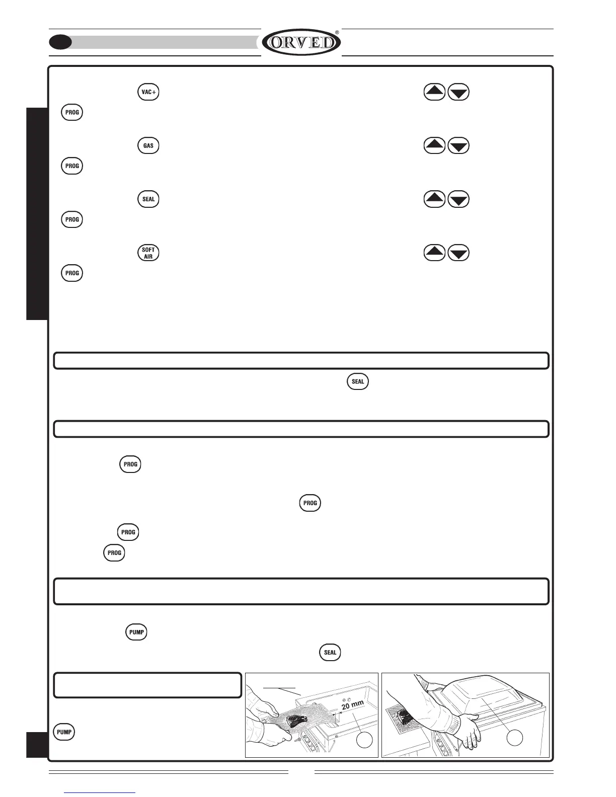 3)Una vez obtenido el vacío completo en el interior de la bolsa presionar la tecla . La máquina pasará a la fase de soldadura de la bolsa. El ciclo