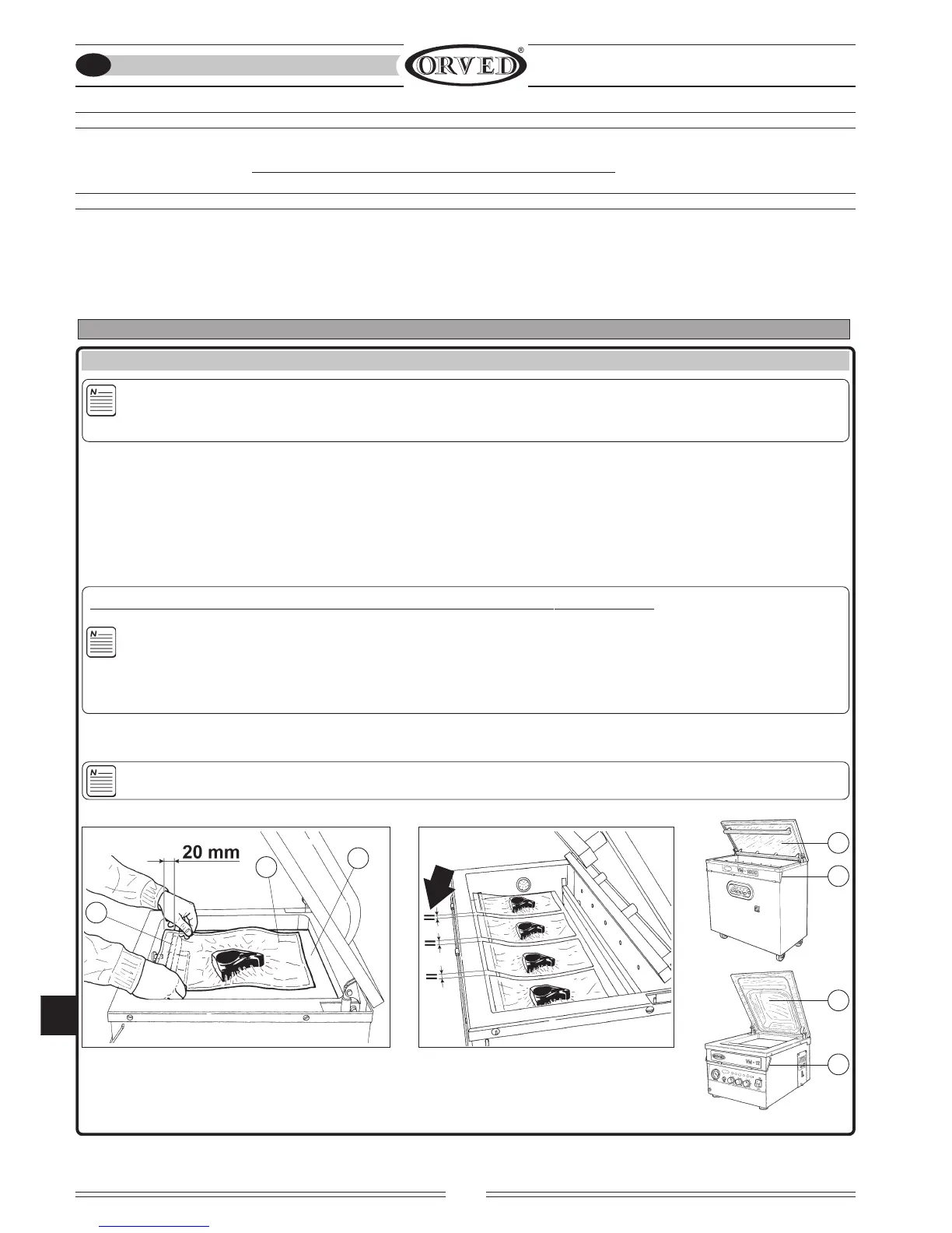 WARNING! The product to be packed must be dry and cold to obtain maximum vacuum. The pump performance is reduced