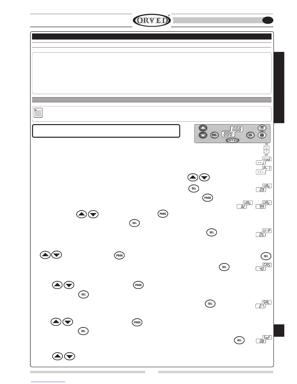 6) PROGRAMMATION FONCTION VAC+ (Voir page 83): Les chiffres de l’afficheur clignotent. Introduire la valeur désirée au moyen des flèches