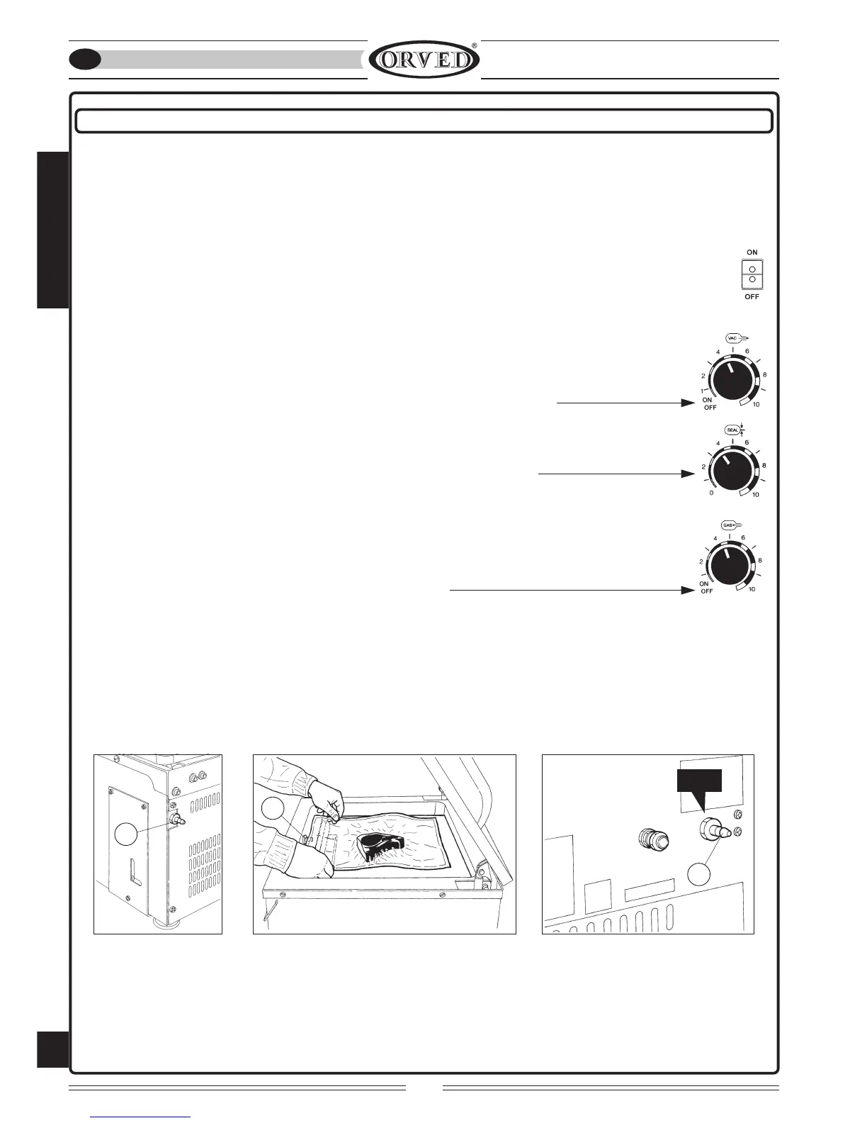 vacío de 0,40 bar. En la posición “OFF” la función GAS queda desactivada. Presionanado el botón STOP la máquina pasa a la