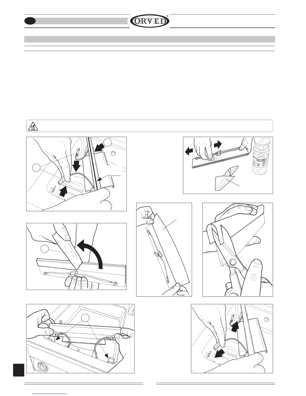 5) reinstalar la barra en las guías (D, Fig. 6) y reconectar firmemente los hilos en sus conexiones (Fig. 7).