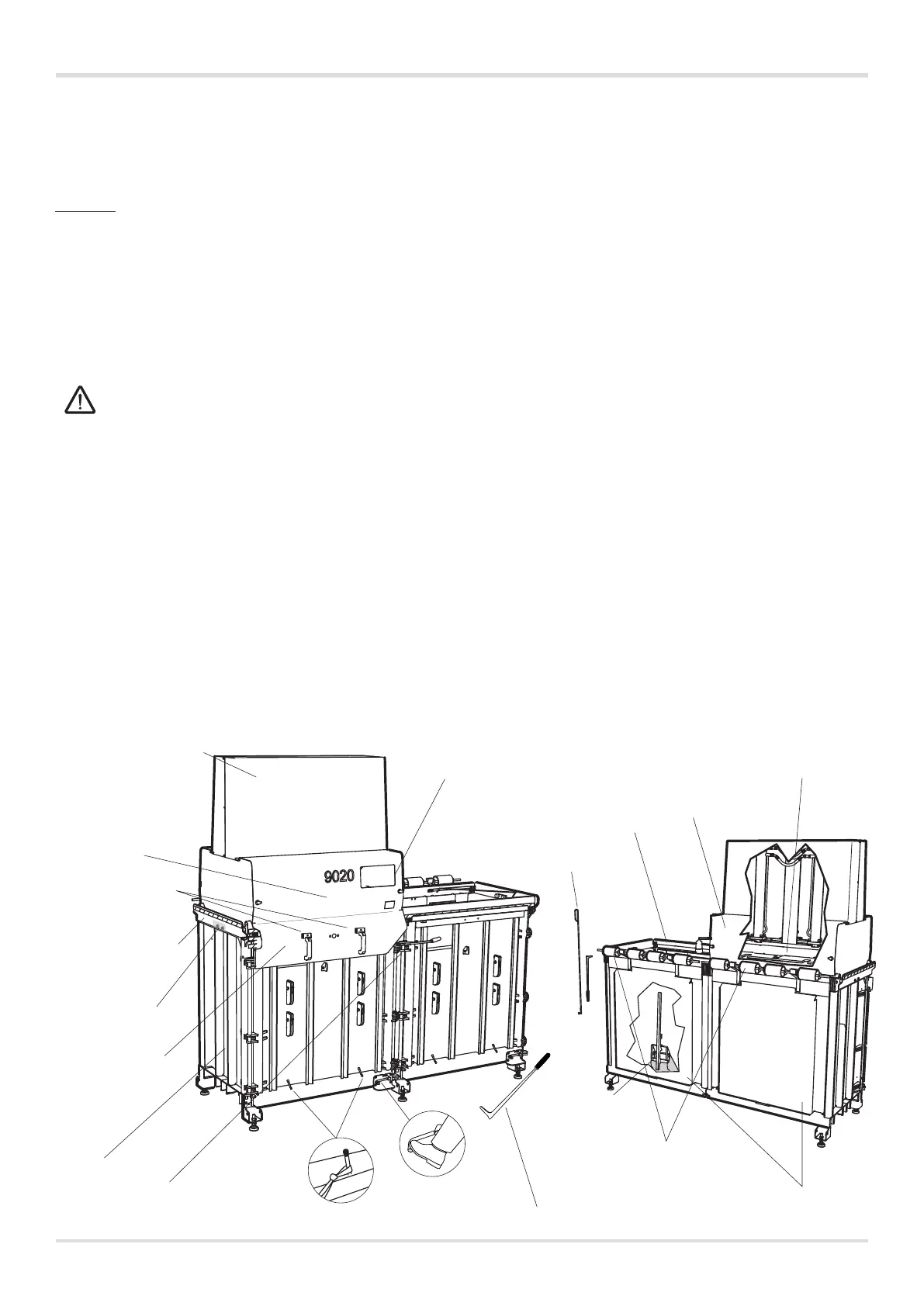 Die Maschine ist im Wesentlichen aus Stahlblech gefertigt. Sie enthält Elektro- und Hydraulikbauteile und