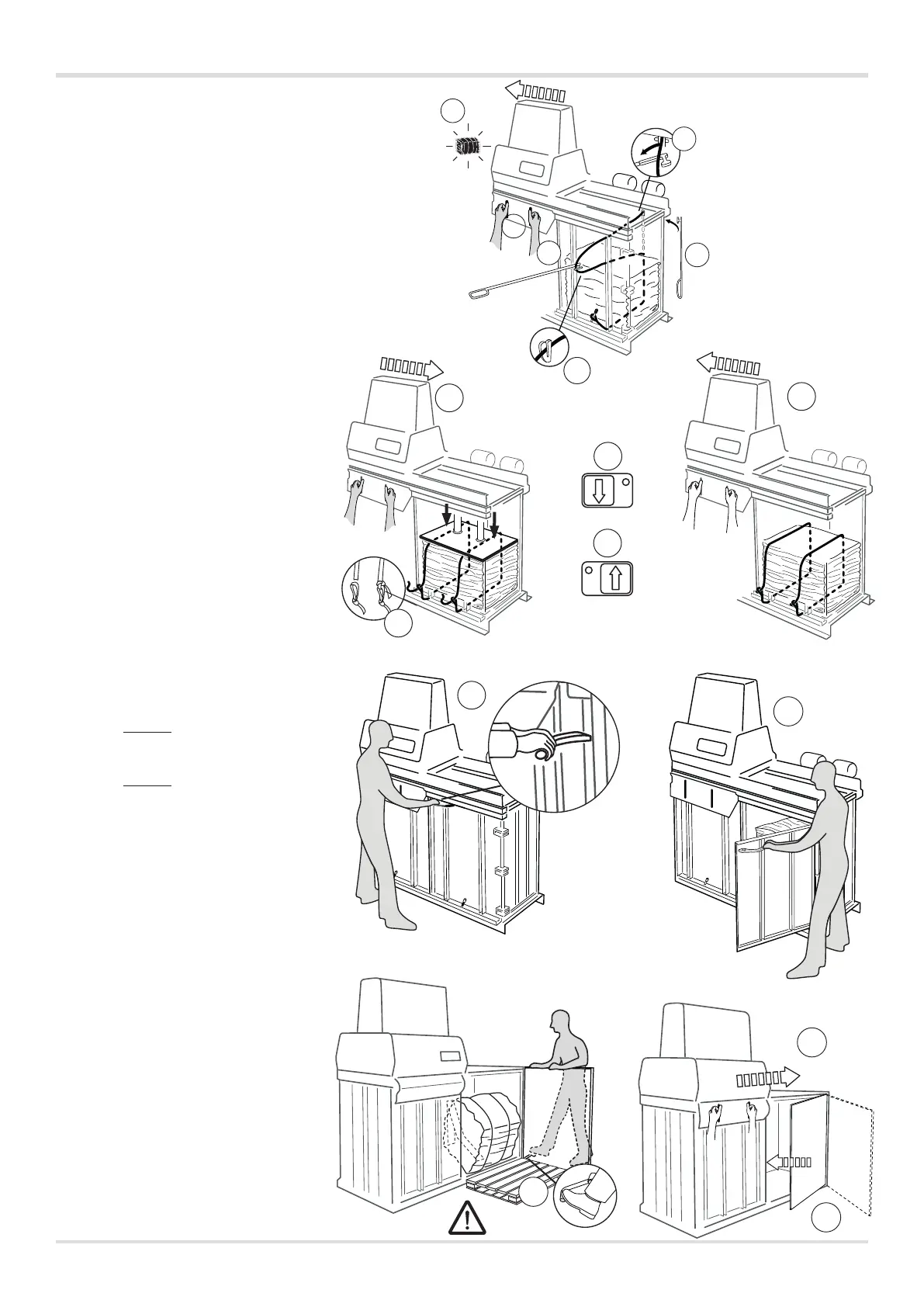 Palette vor den Behälter legen.