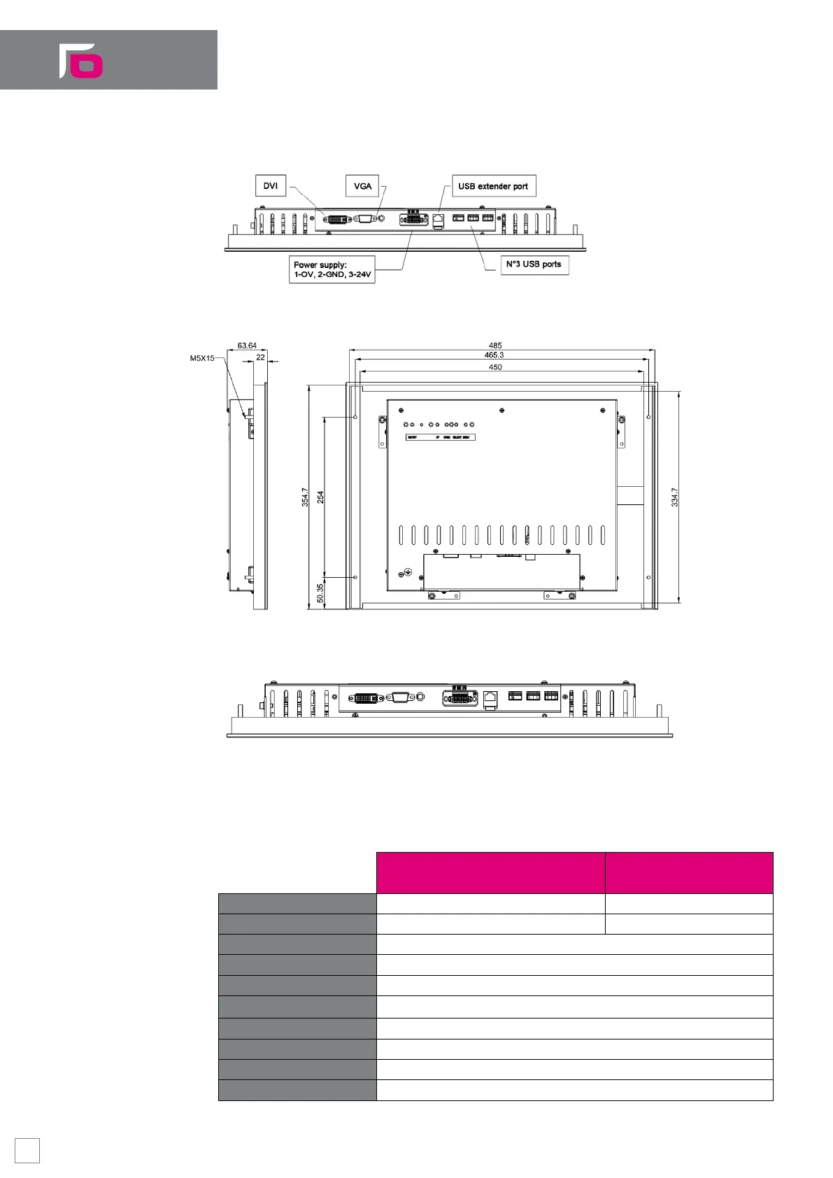 OPENconsole 17” Monitor module dimensions - side and rear view