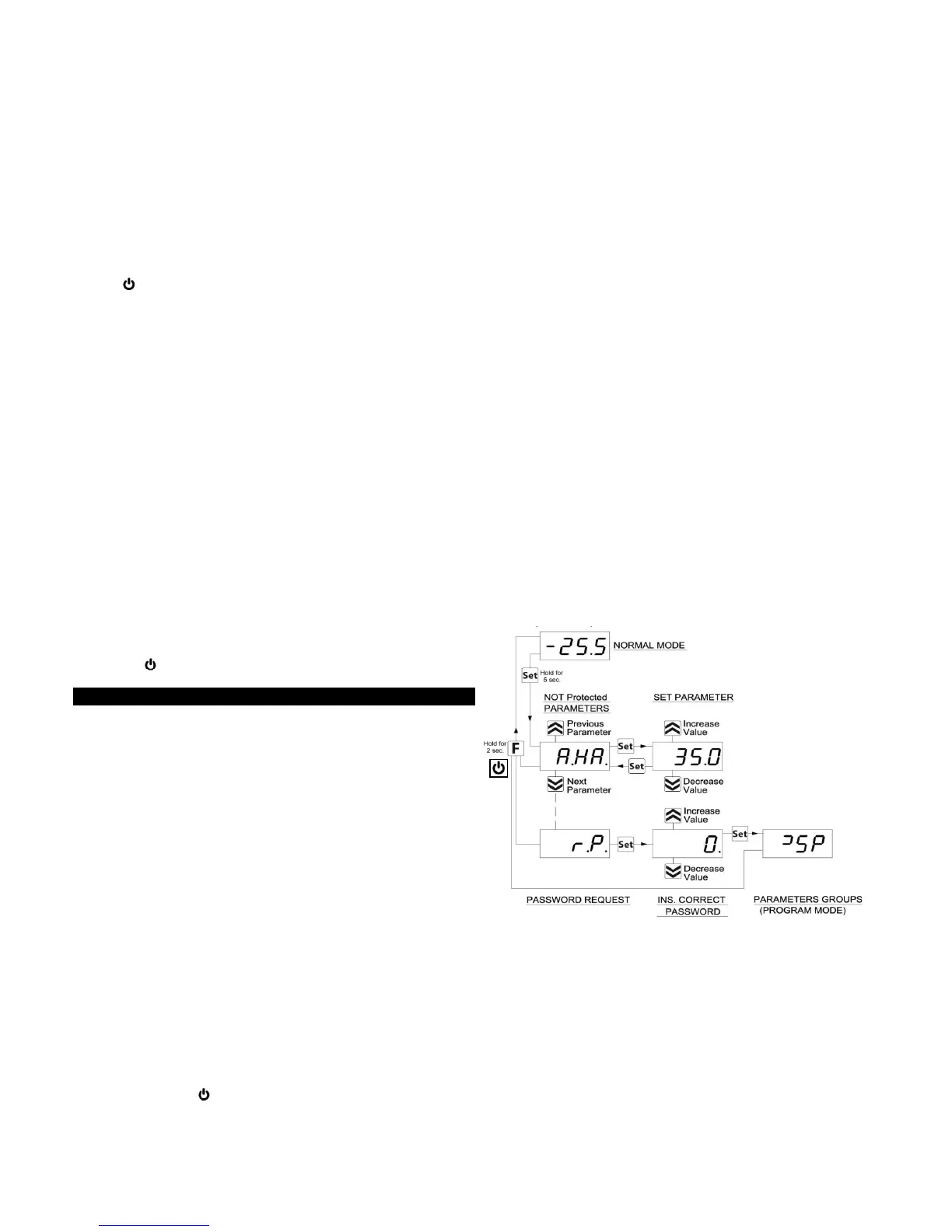 press the "SET" button for 5 seconds. Access parameters will be