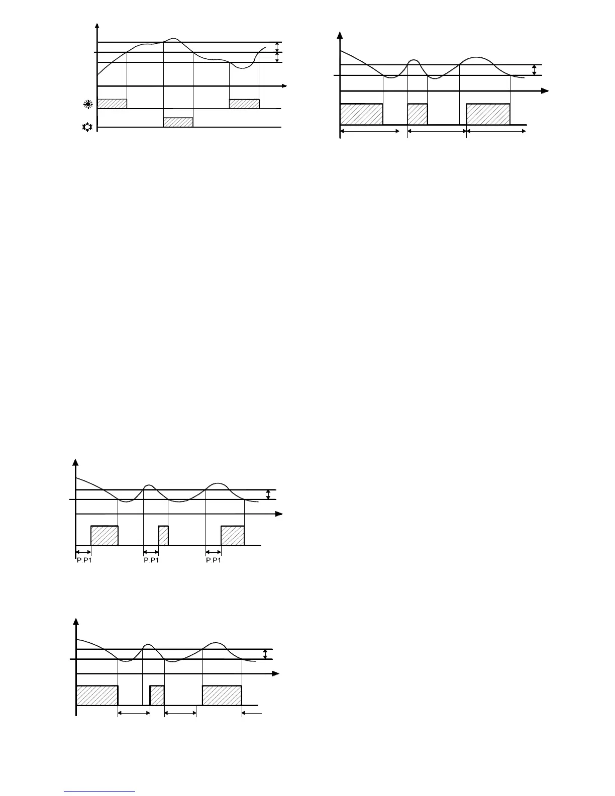 heating mode with Set = "d.Te" and with fixed hysteresis of 1 º C