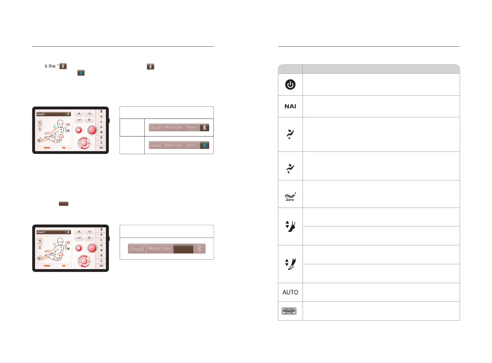·Click the “ ” icon to adjust the massage time function. Each time you press it,