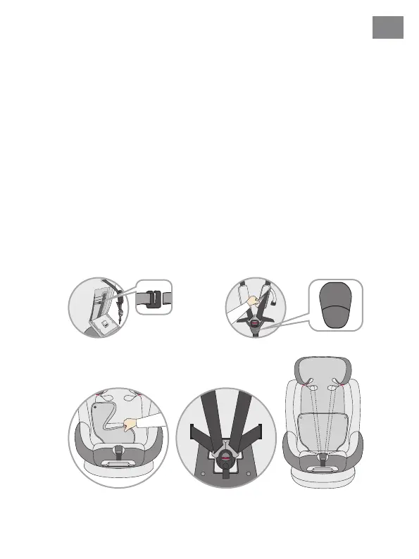 • Stow the Top-Tether belt in the storage compartment at the back of the child car seat.