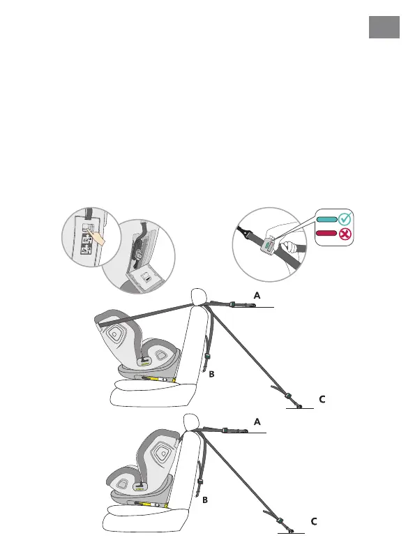 e tirarlo fi no a stringerlo il più possibile. L’indicatore non diventa verde fi nché la cintura non è