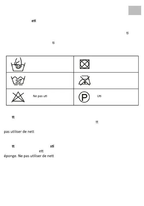 humide et de l‘eau savonneuse ou à la main à 30 ° dans de l‘eau savonneuse. Ne