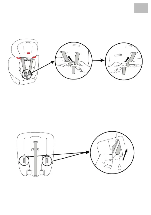 of the harness straps o the harness connector at the back of the backrest and pull the webbing