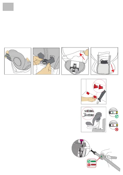 Ziehen Sie beide Schlosszungen der Gurte heraus und stecken Sie diese in das Gurtschloss.