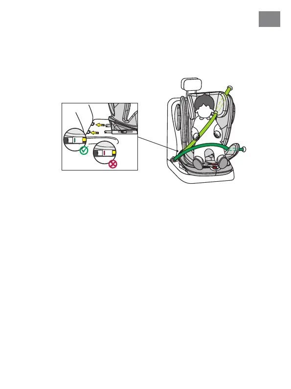 11 . Tire de la correa diagonal para apretarla fi rmemente. Asegúrese de que los cinturones no es-