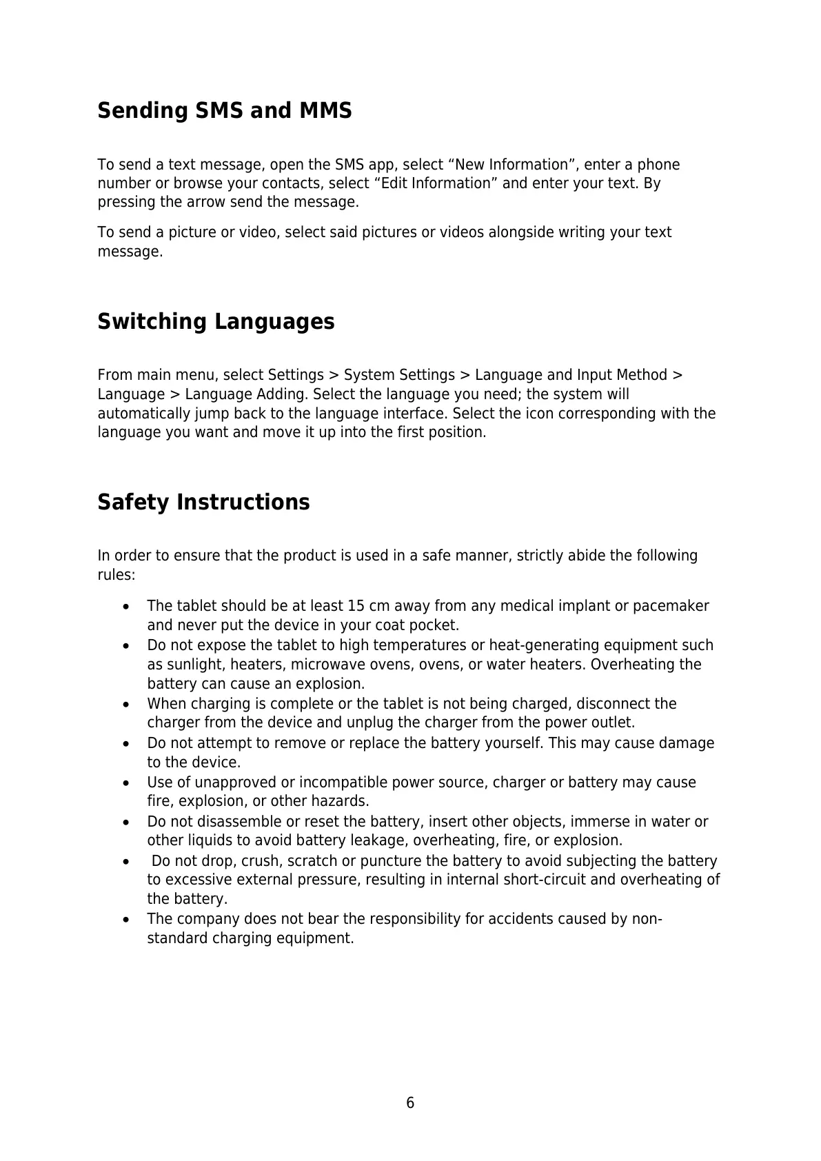 Do not drop, crush, scratch or puncture the battery to avoid subjecting the battery