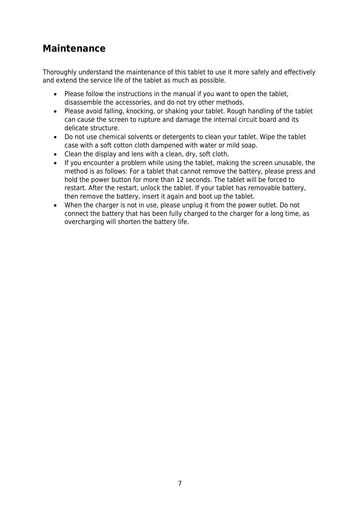 and extend the service life of the tablet as much as possible.