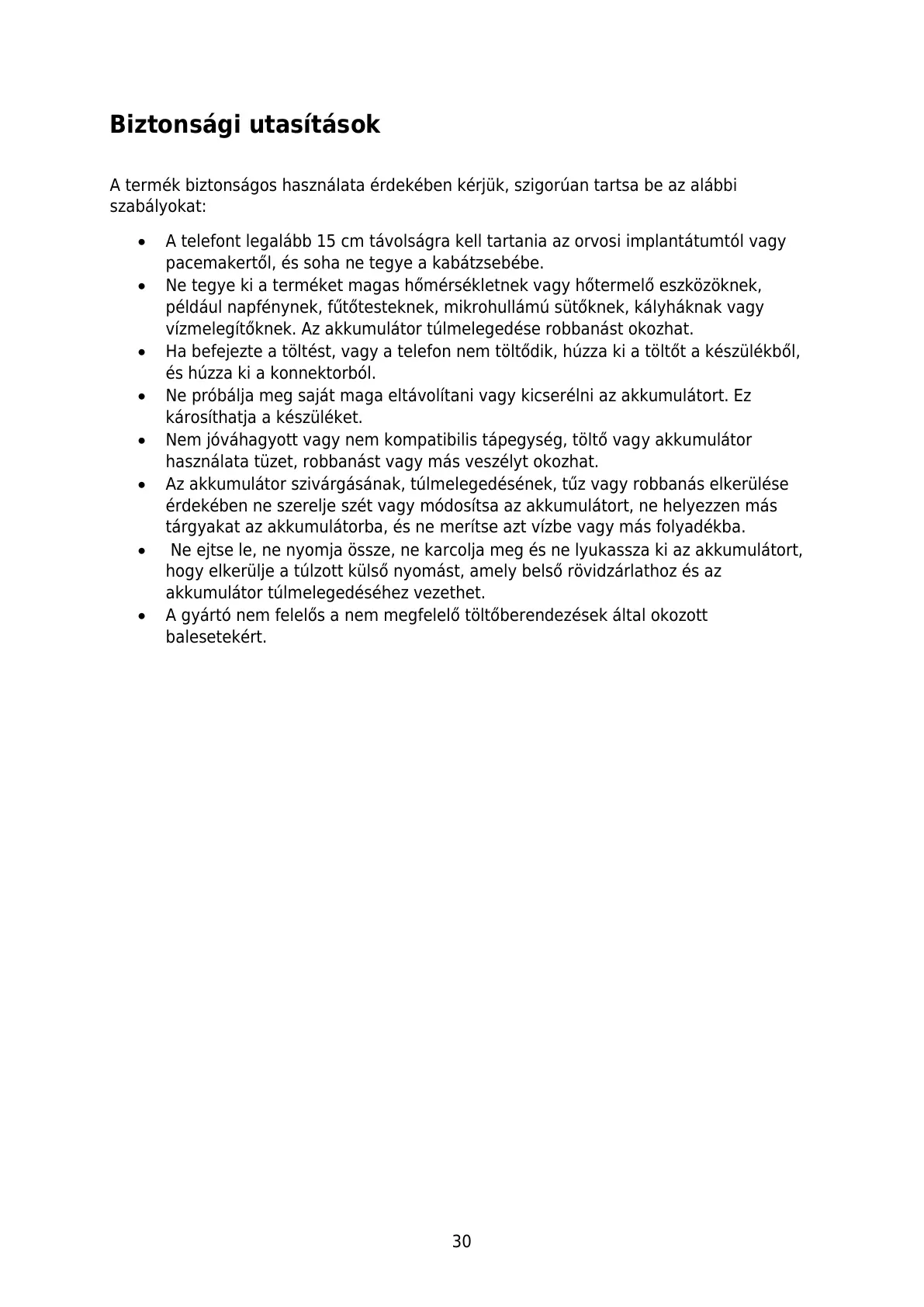 A gyártó nem felelős a nem megfelelő töltőberendezések által okozott