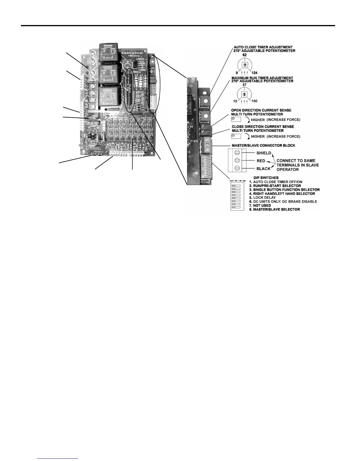 Auto Close Timer Adjustment: This 270-degree adjustable potentiometer will signal the operator to close automatically,