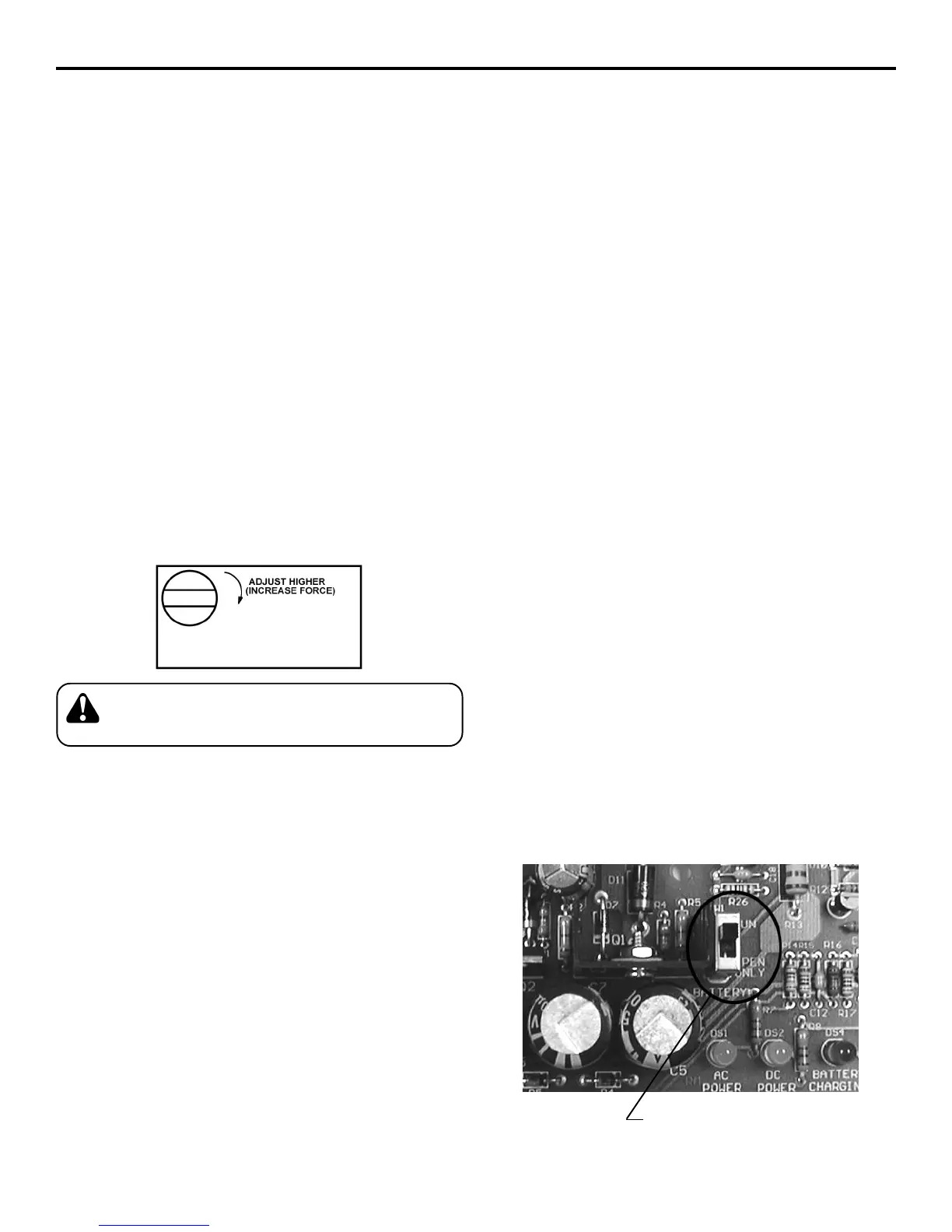 adjustment. Begin by starting the gate going closed. If the operator stops and reverses, turn the close direction potentiometer