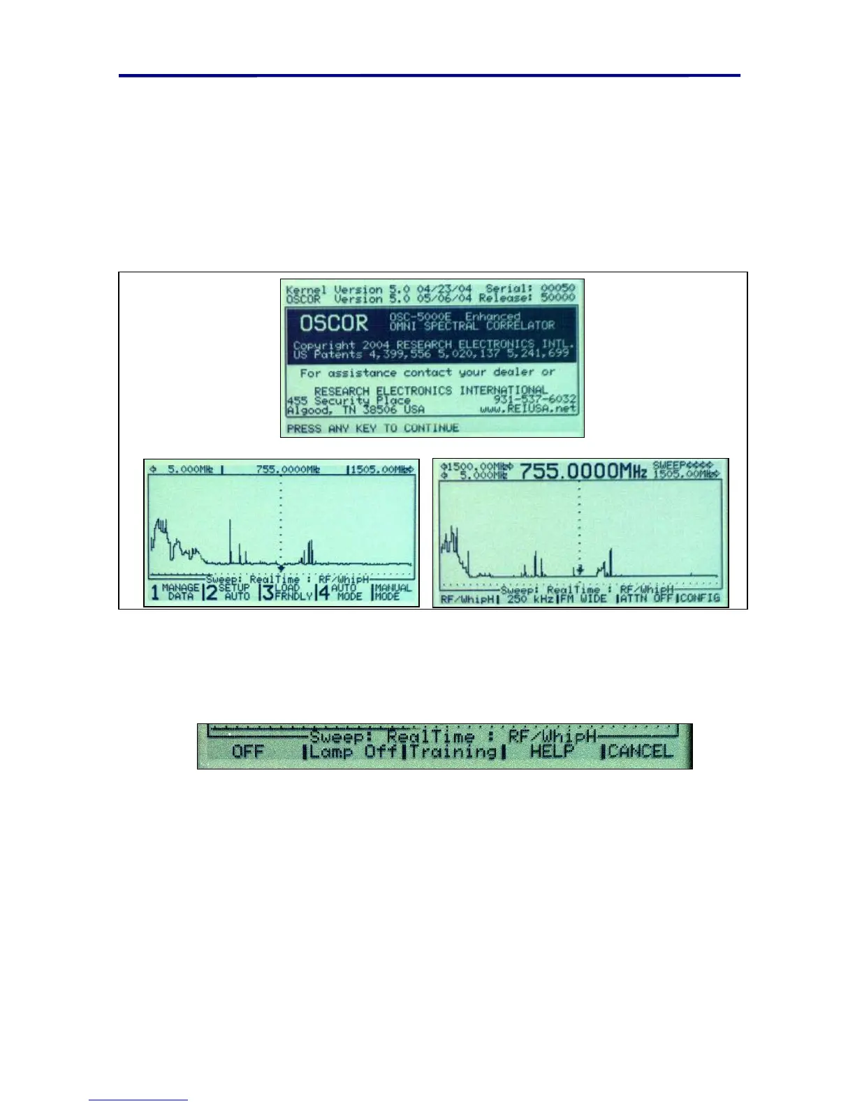 FIGURE 8 OSCOR OPENING SCREEN AND DEFAULT SWEEP DISPLAY