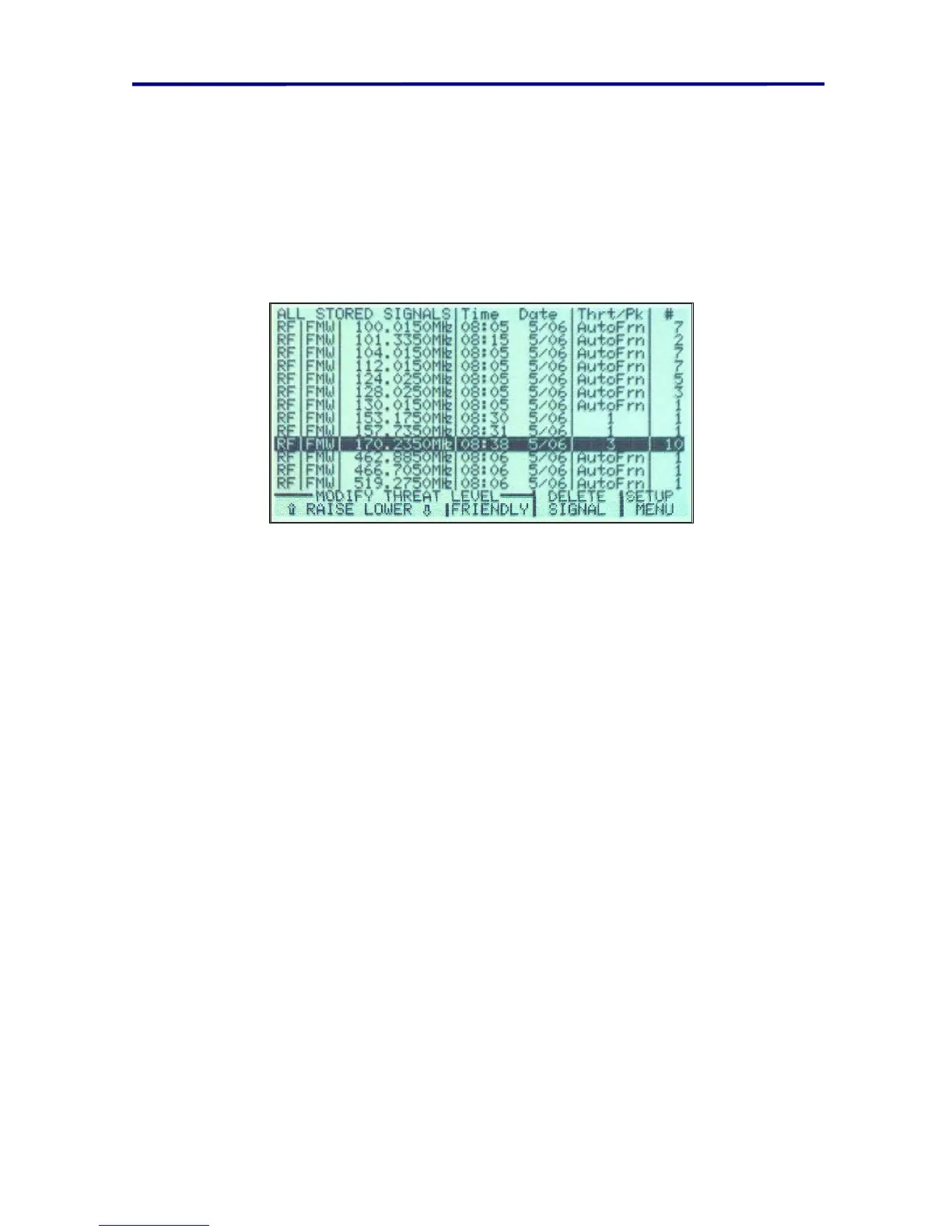 • The fifth column (labeled Thrt/Pk) indicates the threat level of the stored signal.