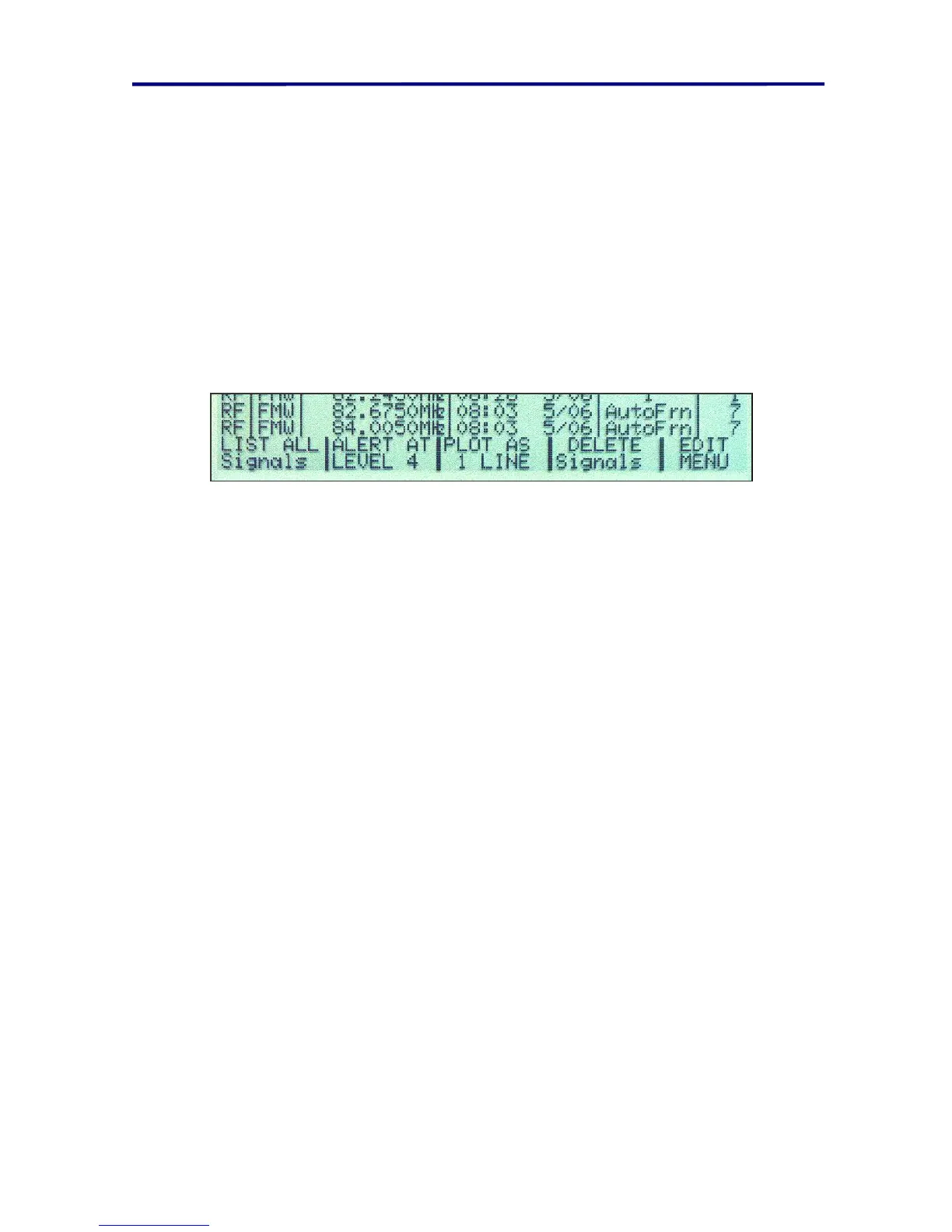 4. Press the F1 button (labeled DELETE CONFIRM) to delete a single signal.