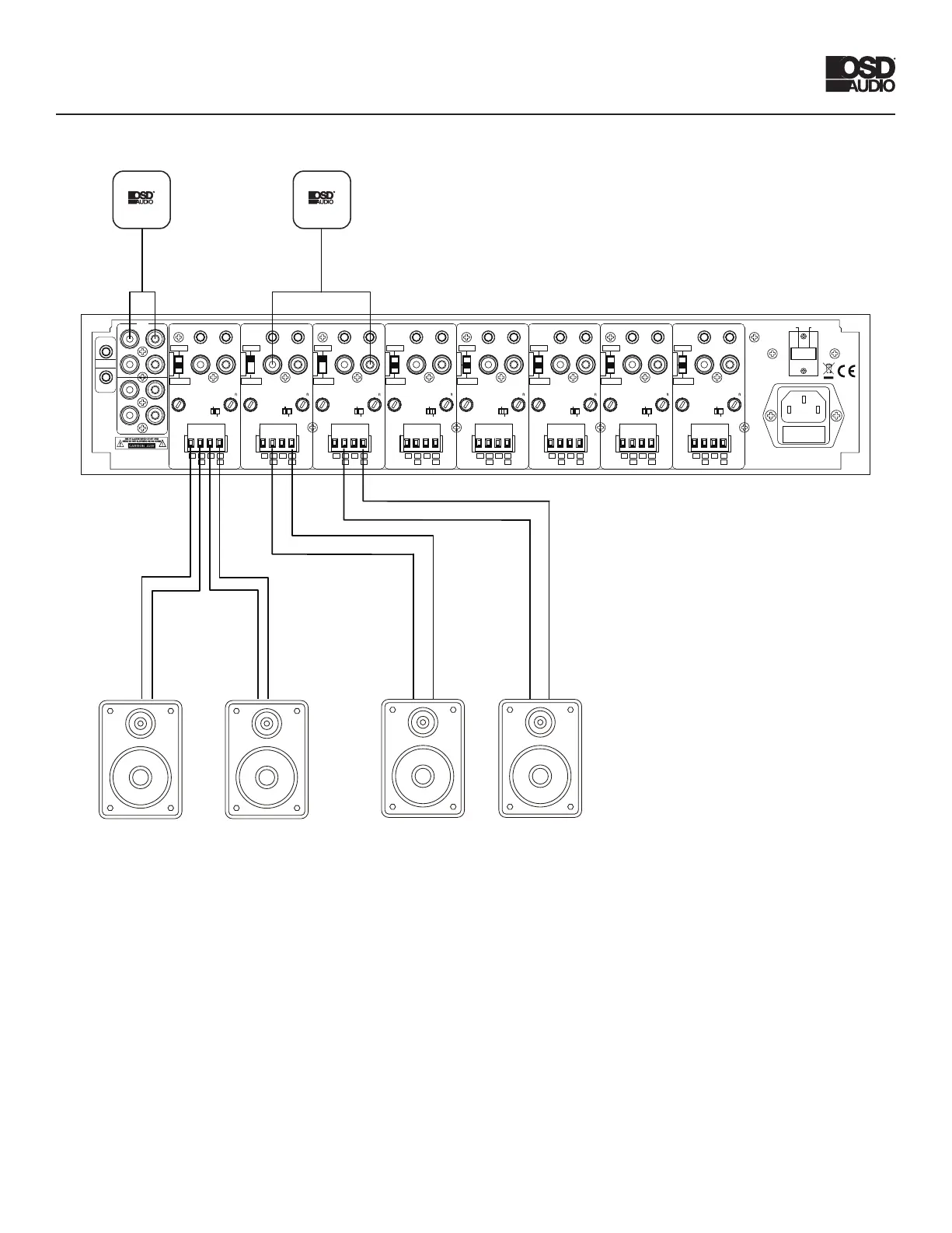 pair,settingtheStereo/Bridgeswitchto“Bridge”andconnectingthespeakerasindicatedbelow.Useasecondchannel