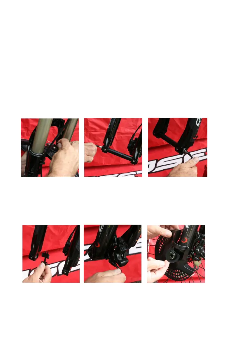 and unscrews clockwise (left hand thread). Remove axle from the fork legs. This