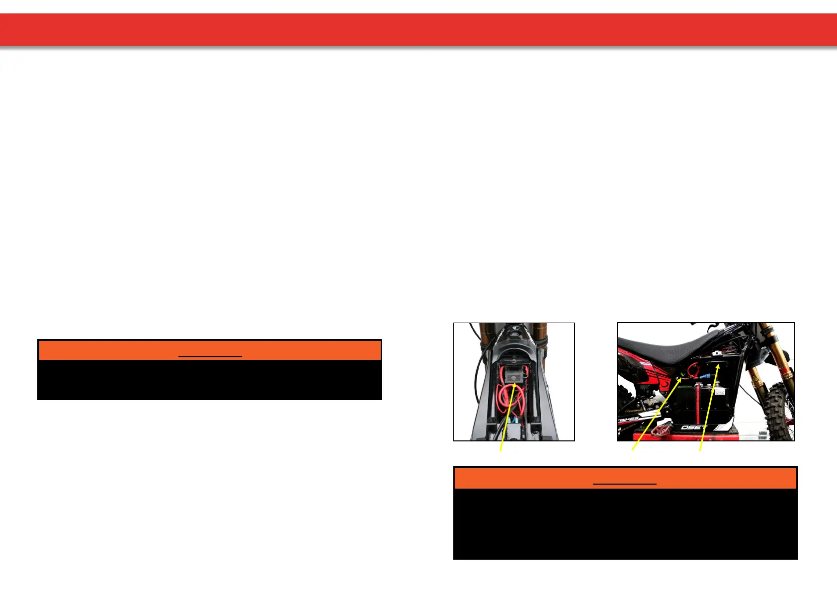 baery charger, throle, or wiring harness of your OSET electric bike. DO NOT ATTEMPT