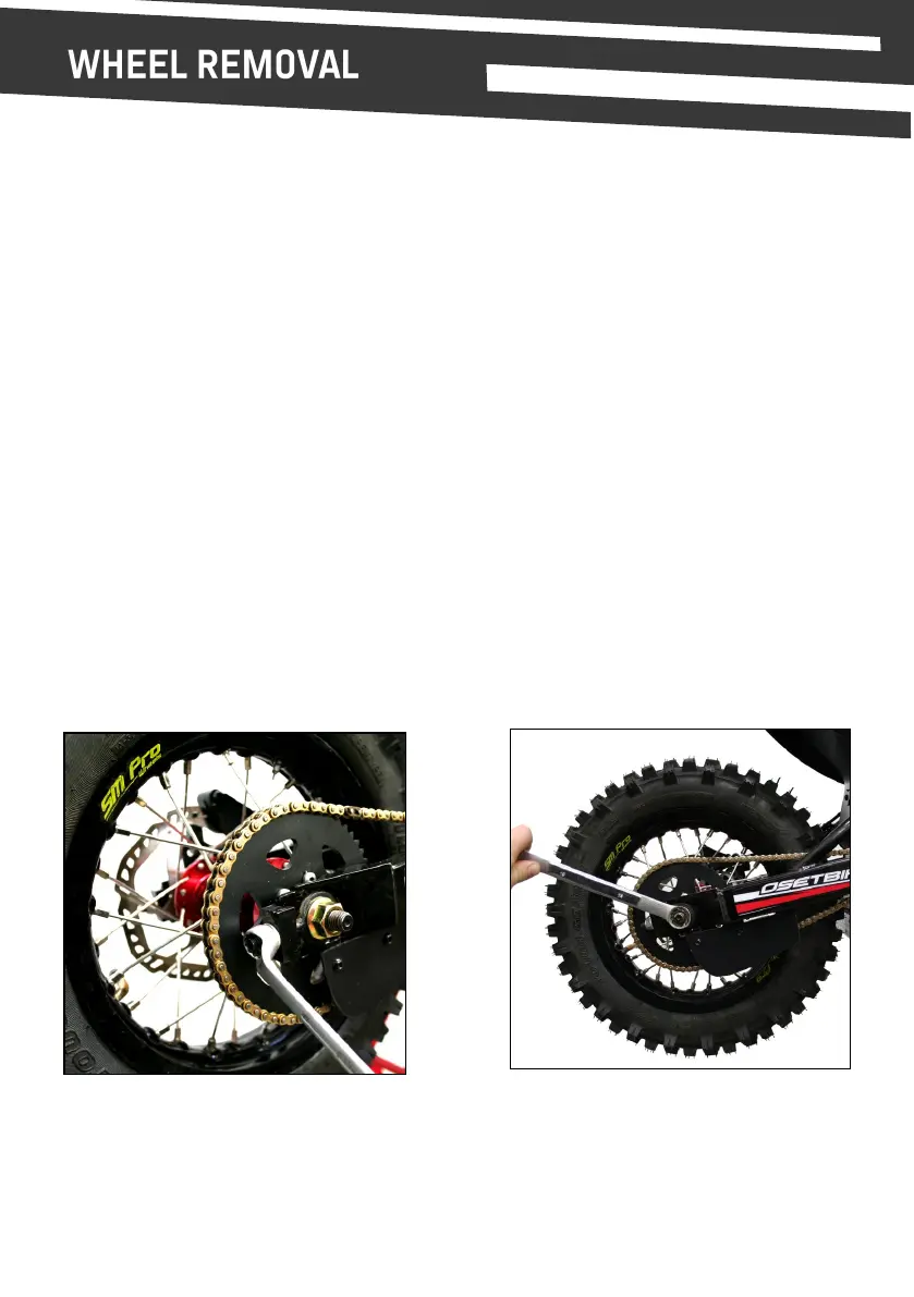 4. Loosen the chain adjustment nuts to the point where the wheel can be pushed forward,