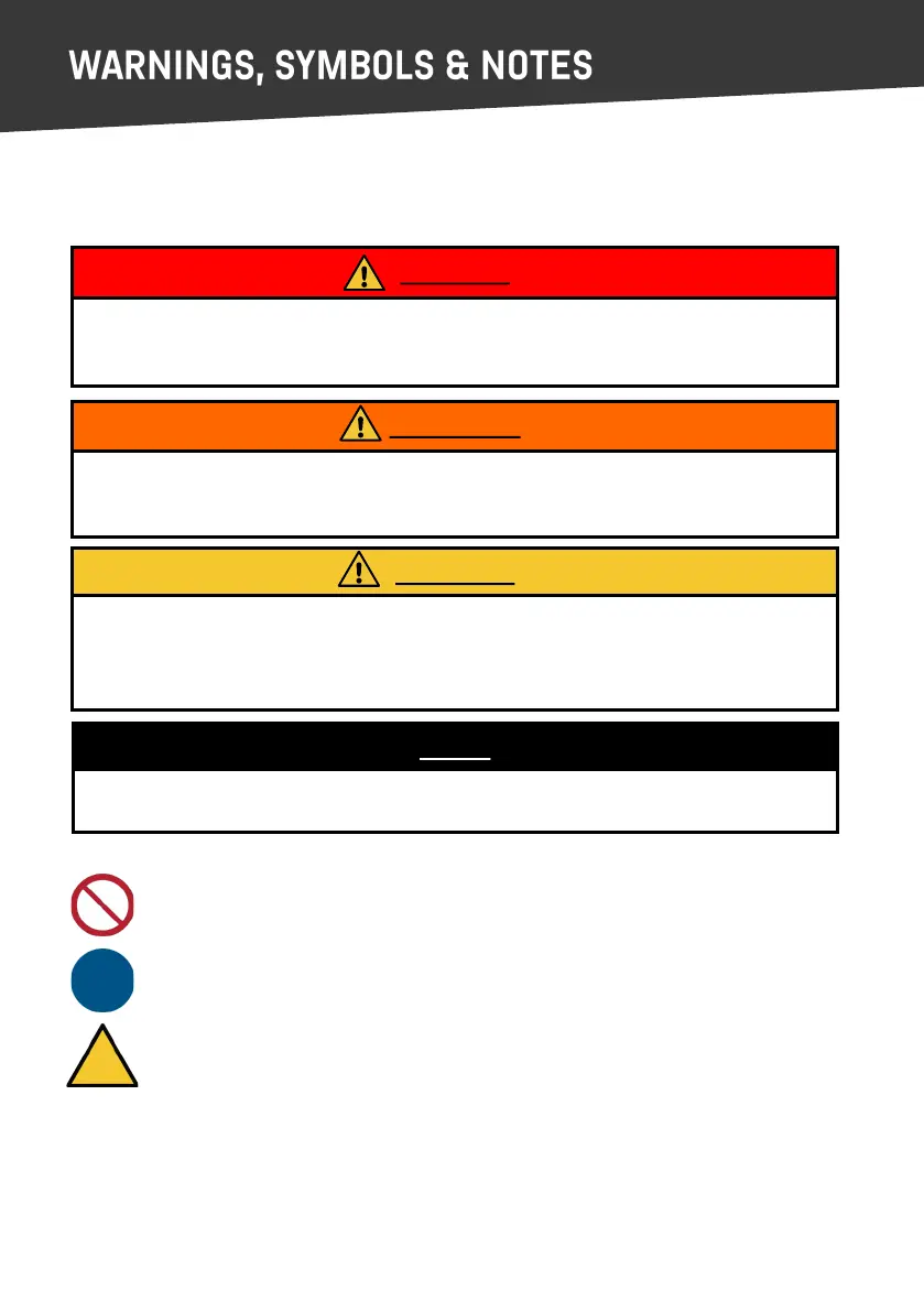 Warnings, Cauons and Notes, please read, understand and follow all of these noces.
