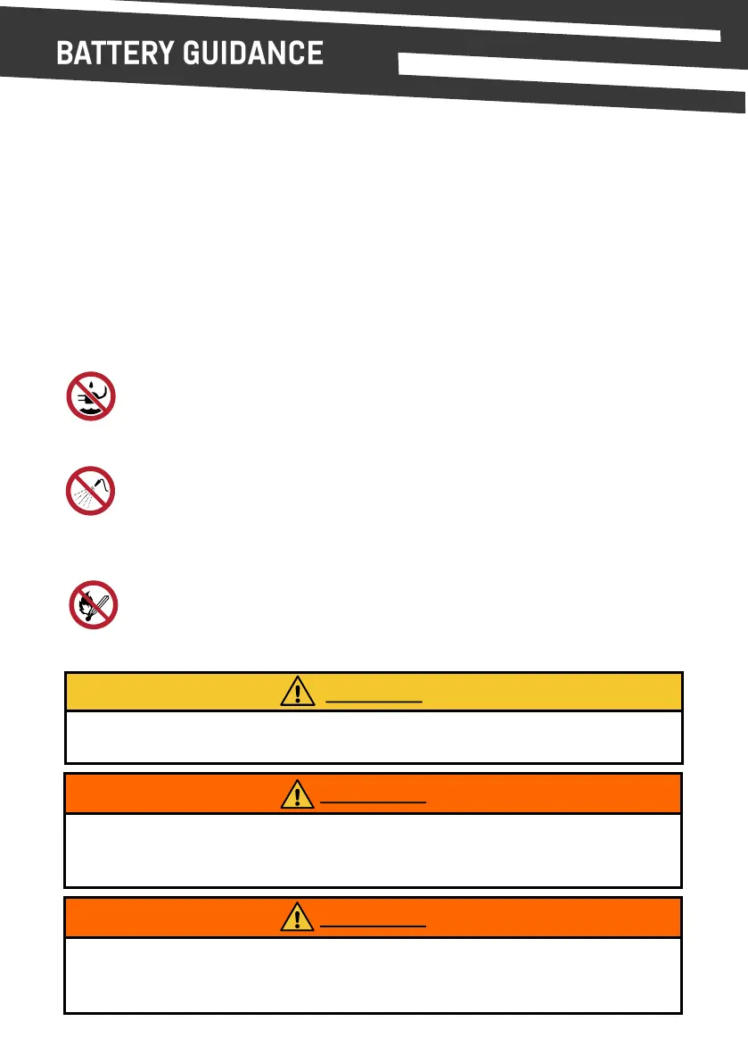 Keep the baery away from excessive heat and/or open ames. Avoid long term