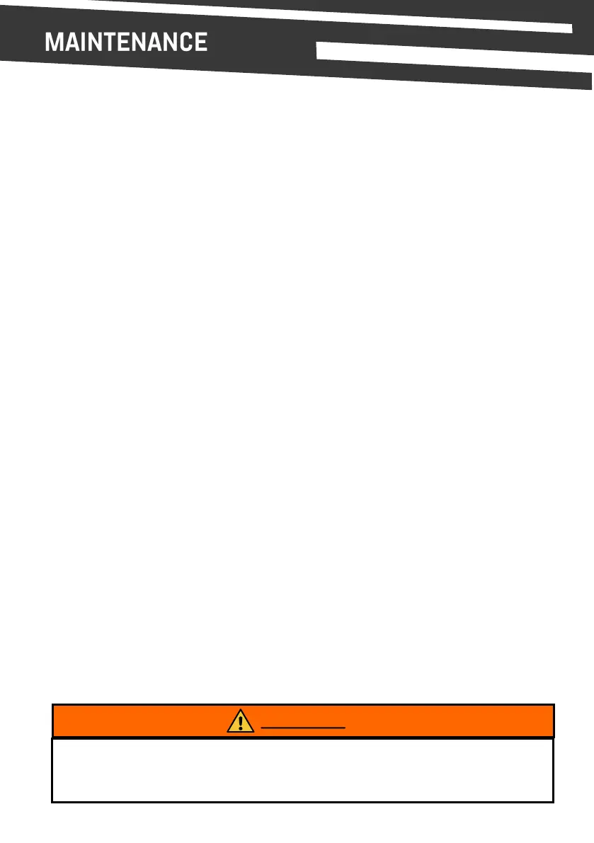 • Remove wheels and inspect bearings. Re-grease front wheel axle.