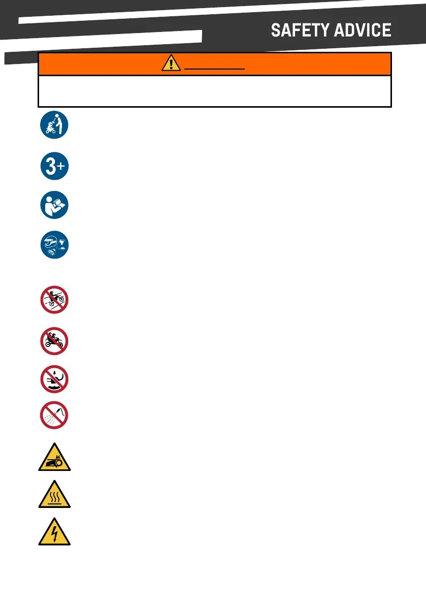 recommend wearing protecve armour. Do not use bike with loose clothing, long