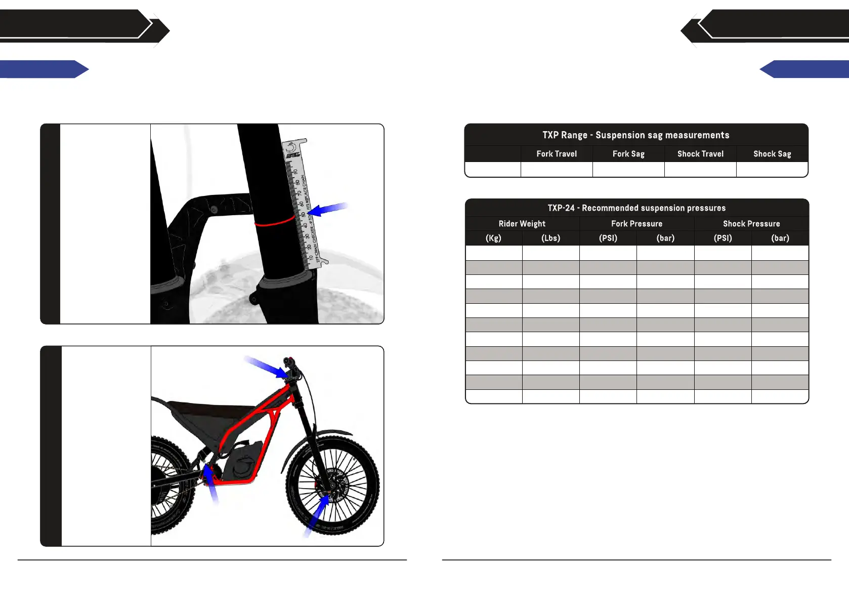 (more sag) or firmer (less sag) based on rider preference and terrain.