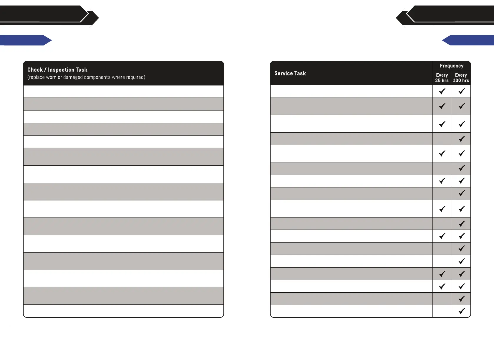 The service intervals below are recommended to keep your OSET in optimal condition.