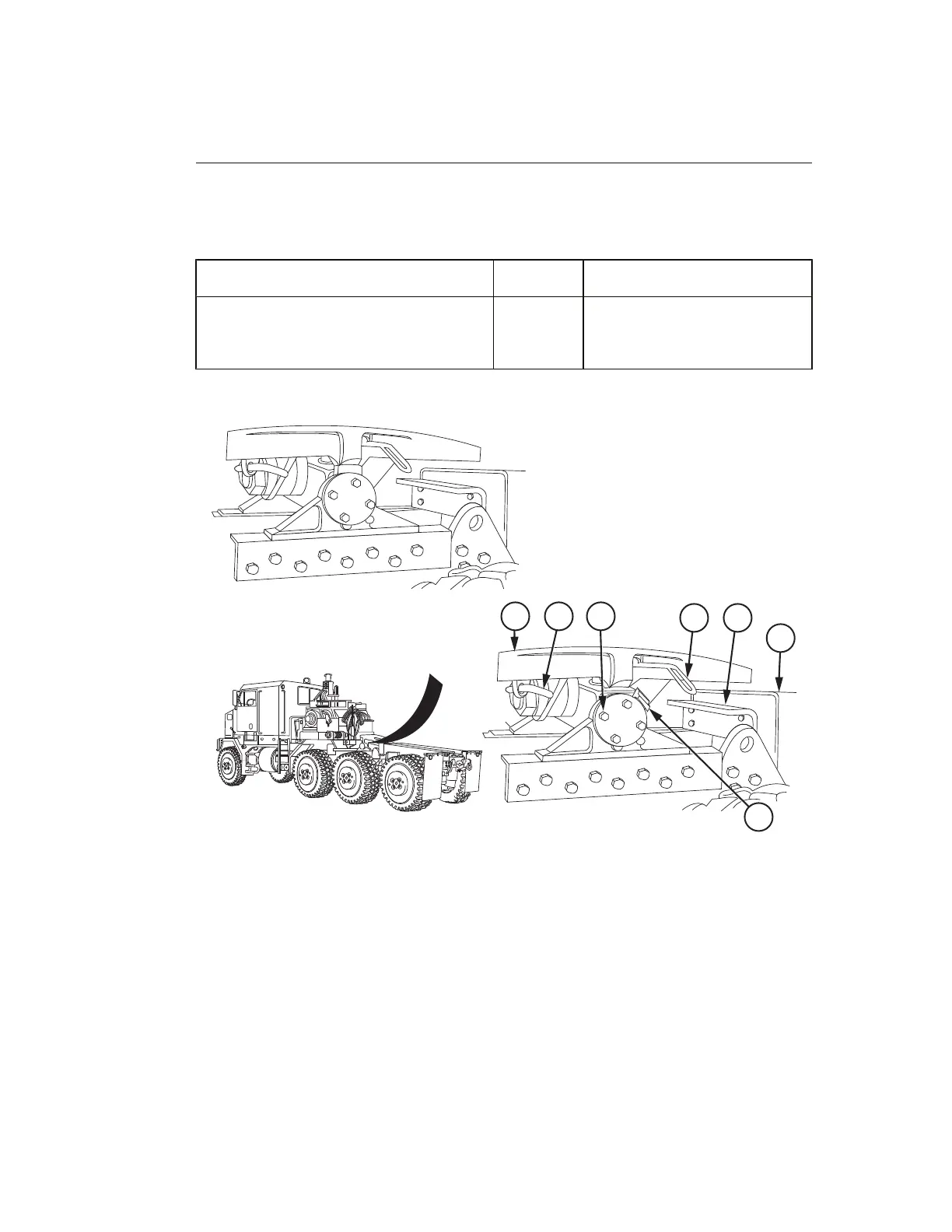 6. Push down rear of fifth wheel (2) until it rests on stop (6) and below guide ramps (7).