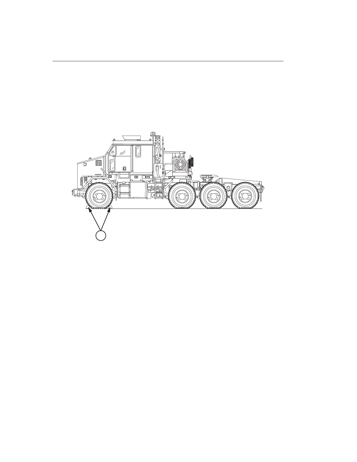 1. Remove wheel chocks (1) from front and rear of tire (No. 1 axle driver side tire shown).