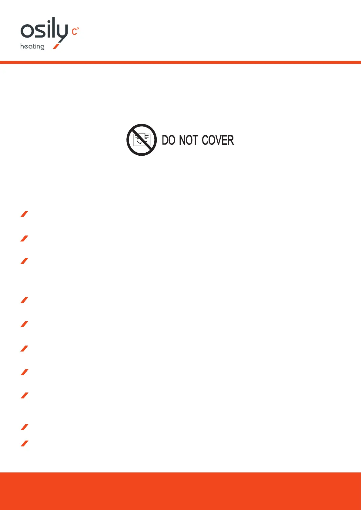 WARNING: In order to avoid overheating, do not cover the heater.