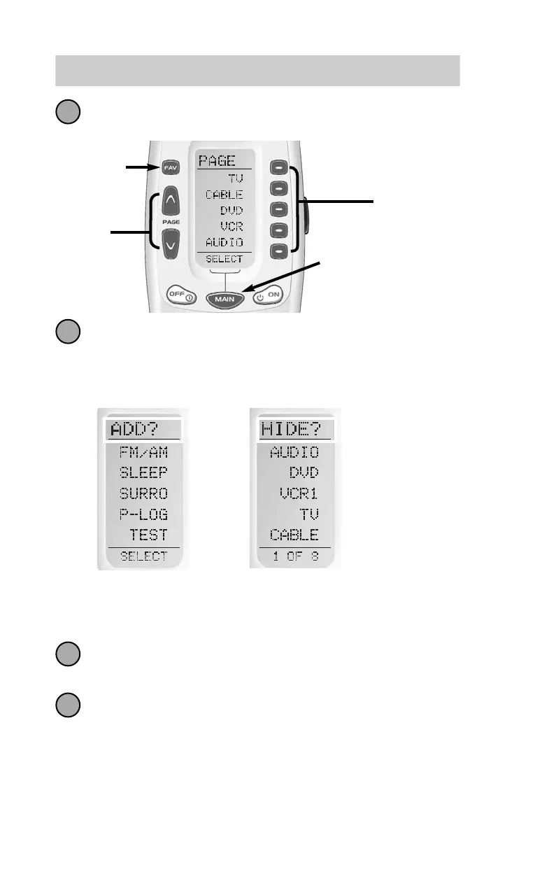 Navigate to any page, using the MAIN, DEVICE, FAV, and PAGE but-