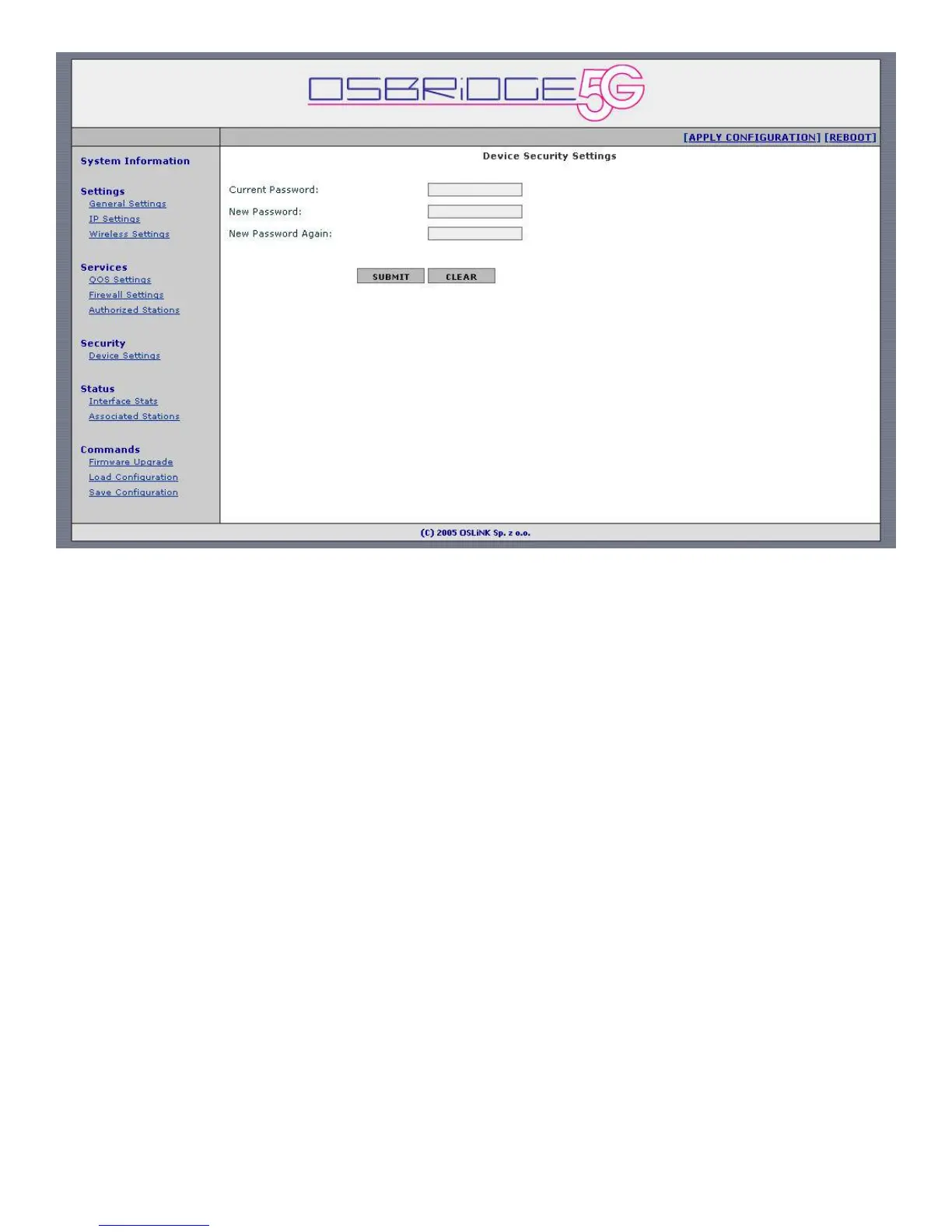 Use this screen to change password which is used to access and configure the device.