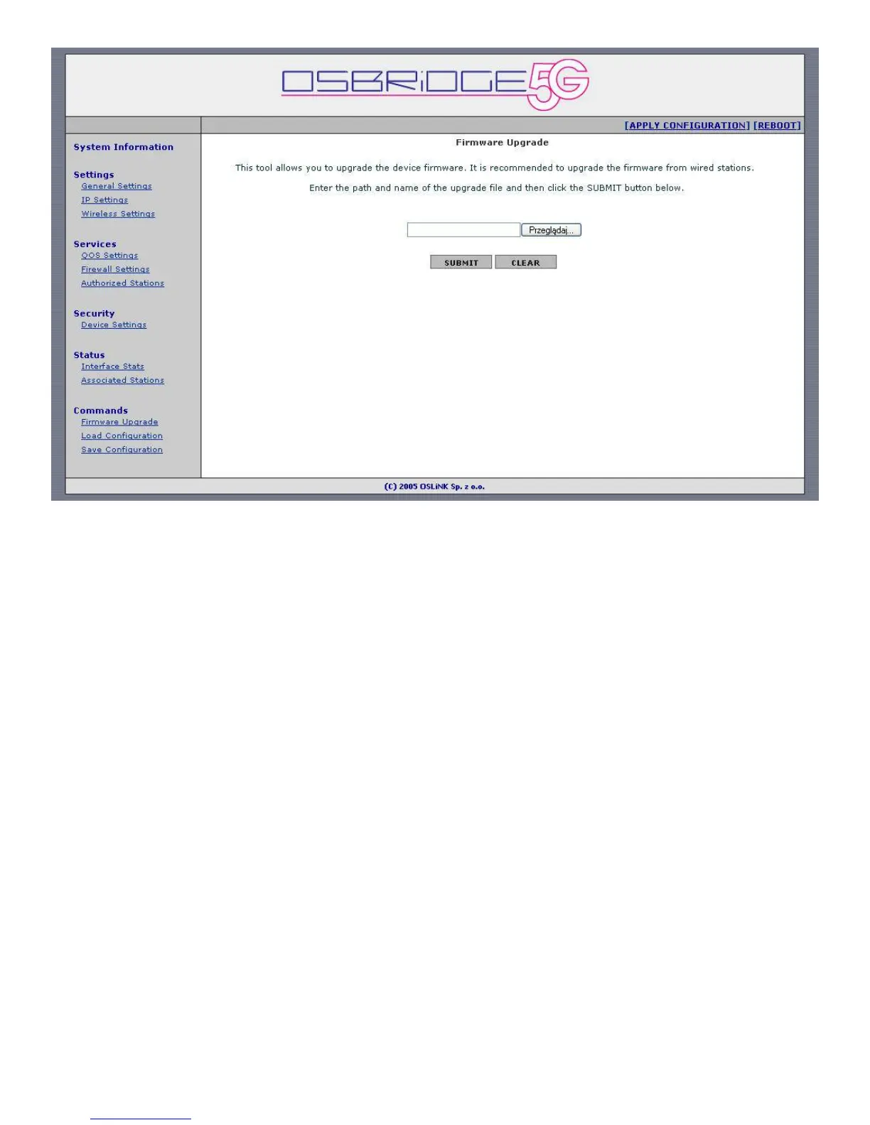 This page allows you to upgrade the device firmware. It is recommended to upgrade firmware