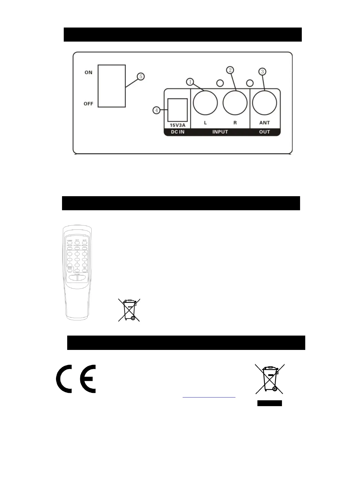 $ 3.$FM$Antenna$connection$ 4.$DC$Input$(15v$3A)$