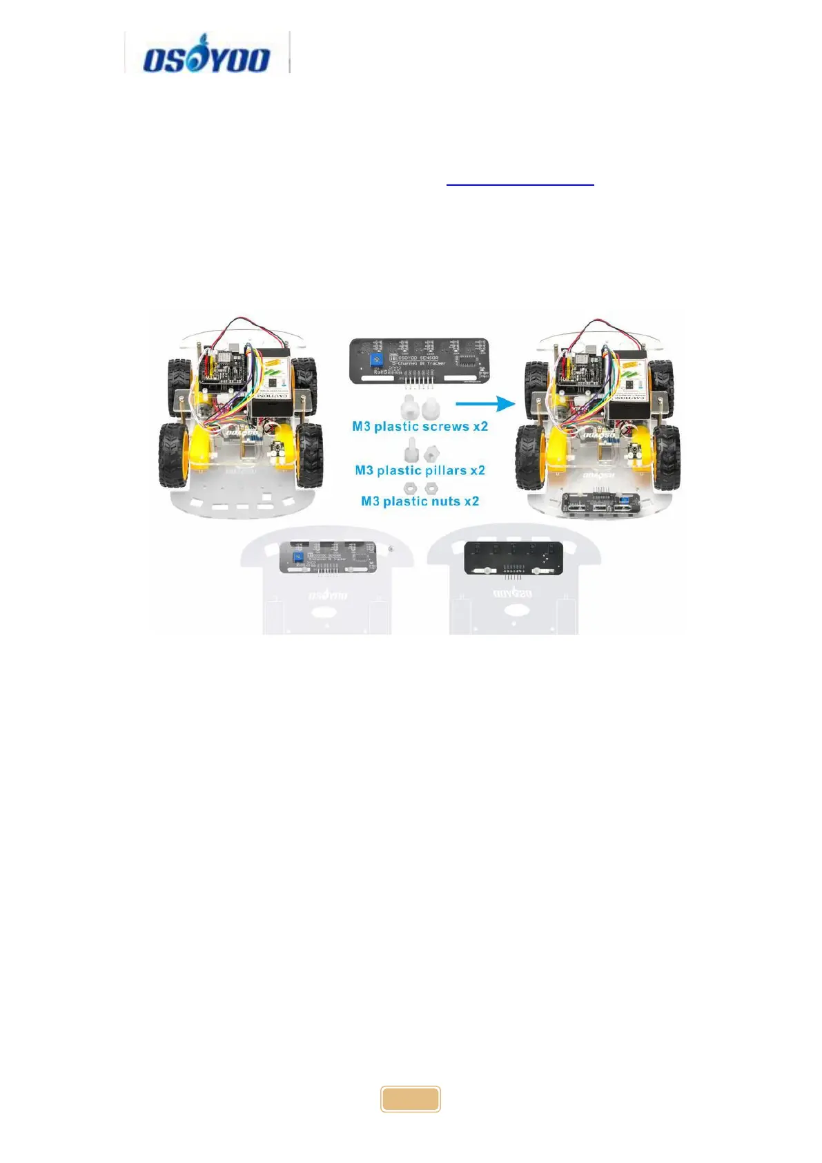 Step 2: Install tracking sensor modules under lower car chassis with 2pcs M3