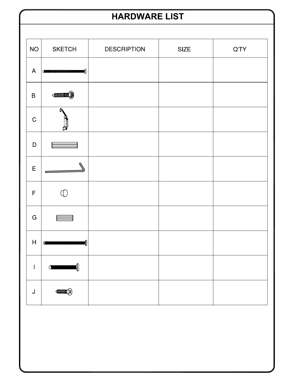 NOTE: Phillips screwdriver also needed for assembly (not provided).