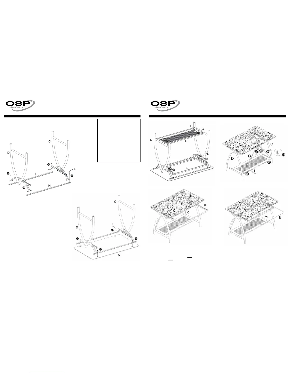 STEP 2 Attach side frame assembly to Glass Top (A) using four Bolts (J1). DO NOT FULLY TIGTHEN BOLTS (J1).