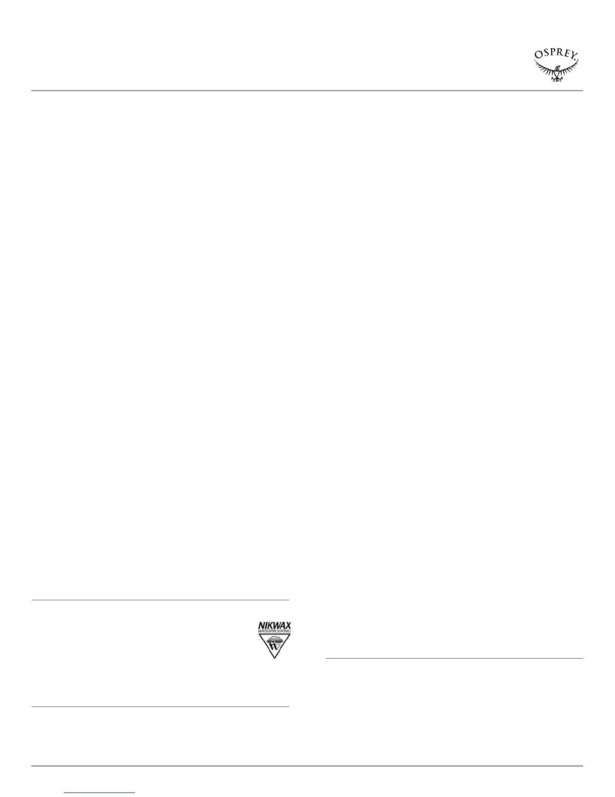 Osprey recommends Nikwax® products for pack care. Be sure to read