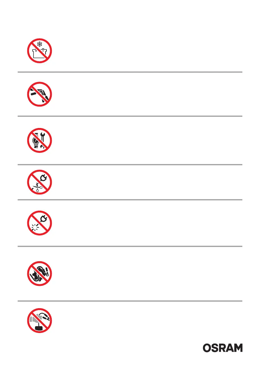 Älä lataa jäätynyttä akkua. Ikke lad opp et frossent batteri. Oplad ikke et frosset batteri. Nenabíjejte zmrzlou