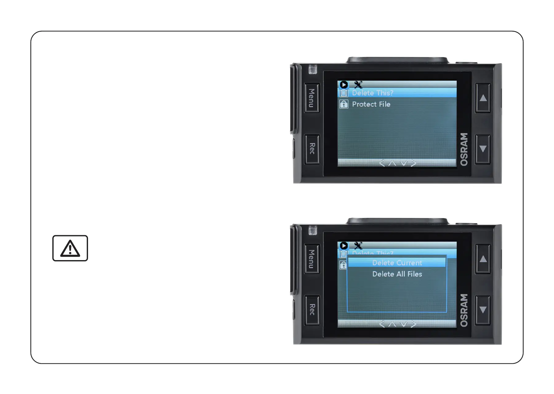 submenu (ensure dashcam recording